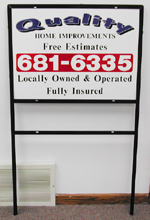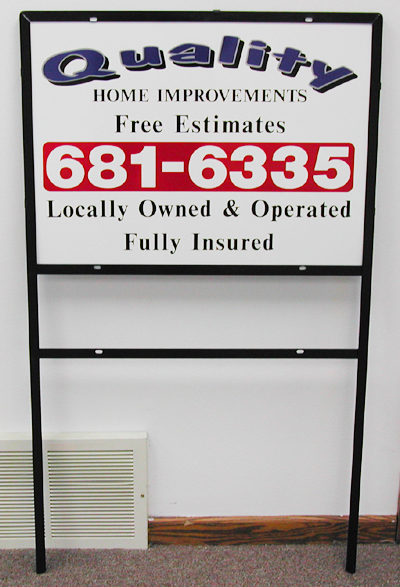 Sign Pro produces durable outdoor yard and job signs in several different configurations to give you more exposure in the community. The signs pictured above are created on durable, non-fade material that will last season after season without losing any of its luster.